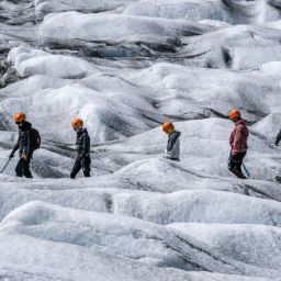 You should allow around three to four hours for our standard glacier hike. We’ll transport you by 4×4 to the starting point of the hike where our guides will lead you through one of the most breathtaking landscapes in this part of Iceland. Along the way you’ll be able to look down over Fjallsárlón and also take in the remarkable panorama of mountains and ice.