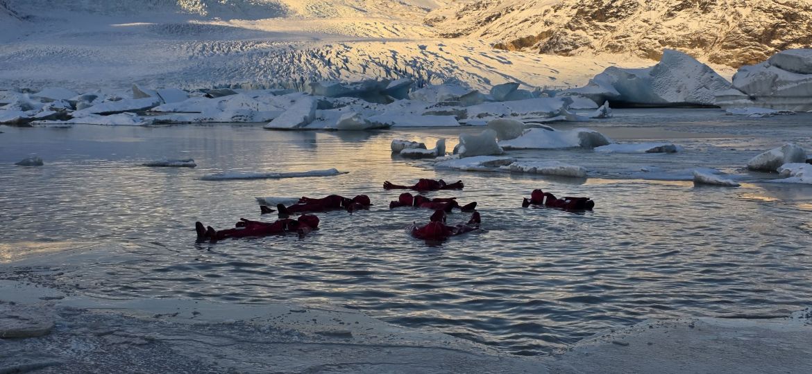 The Ice Floating Iceland Experience is the first of it’s kind in Iceland. Step into a world of serenity at Fjallsárlón Glacier Lagoon, where stillness meets adventure. Dressed in a special immersion suit, you’ll float safely and comfortably among drifting icebergs, surrounded by the majestic outlet glacier of Vatnajökull National Park.